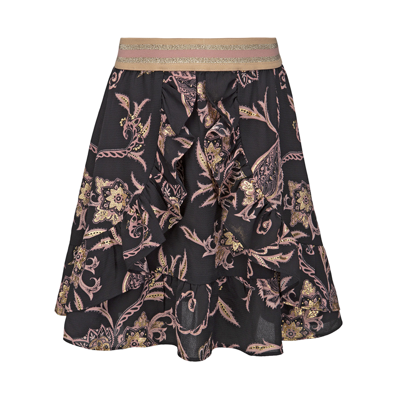 Sød mønstret nederdel med flæser fra Petit by Sofie Schnoor. Nederdel har en fin kontrast elastik i beige, guld glitter og rosa i taljen. 100% Polyester (Læs mere)