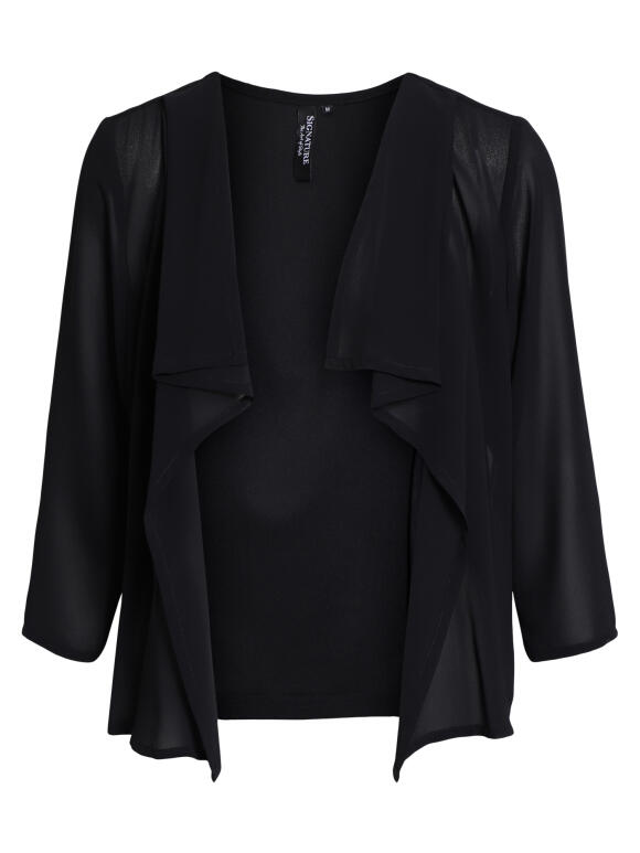 Signature bolero jakke med trekvart ærmer. Åbenstående model med chiffon ærmerm og chiffon forstykker som falder i læg. Ryg i jersey kvalitet. 100 % polyester. Vask ved 40 grader. (Læs mere)