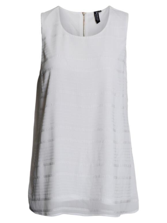 Signature chiffon top i flot offwhite. Toppen er foret med elastisk jersey stof. Guld pynte lynlås i nakken. God længde ned over hoften. 100 % polyester. Vask ved 30 grader. (Læs mere)
