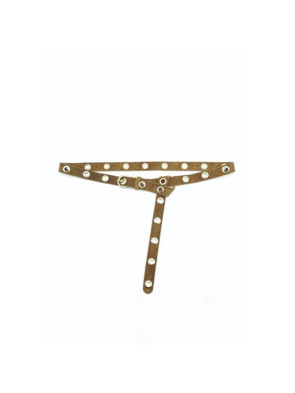 Vanting camel farvet ruskindsbælte med nittehuller. Længde 140 cm med muglighed for afkortning. (Læs mere)
